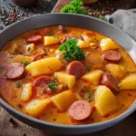 Kartoffelgulasch mit Rindswurst ist ein herzhaftes, wohltuendes Gericht, das nicht nur den Bauch füllt, sondern auch die Seele wärmt. Dieses Rezept ist ideal für kalte Tage, wenn du Lust auf etwas Deftiges hast. Die Kombination aus zarten Kartoffeln, saftiger Rindswurst und aromatischen Gewürzen bringt dich direkt in eine gemütliche Stimmung. In diesem Artikel zeigen wir dir Schritt für Schritt, wie du dieses köstliche Gericht zubereiten kannst.