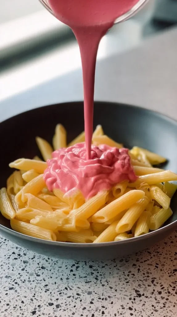 In der Zwischenzeit bringen Sie einen großen Topf mit gesalzenem Wasser zum Kochen. Geben Sie die Pasta Ihrer Wahl in den Topf und kochen Sie sie gemäß den Anweisungen auf der Verpackung al dente. Während die Pasta kocht, wird die Rote Bete-Feta-Sauce immer cremiger und aromatischer.