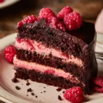Ein köstlicher Kuchen mit intensiver Schokolade und frischen Himbeeren, ideal für besondere Anlässe oder zum Naschen.